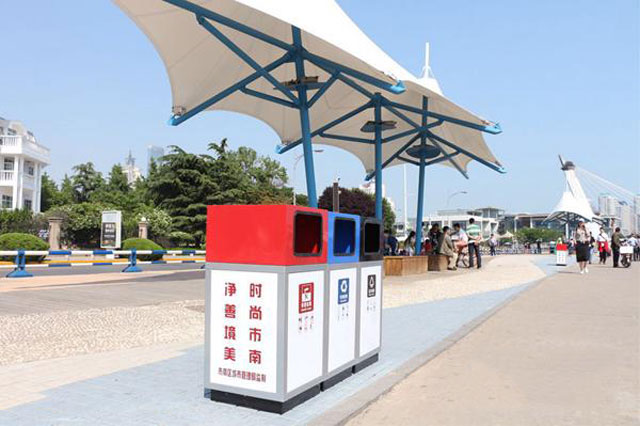深圳南區(qū)城市管理局工作人員介紹說:“此次在前海一線新更換的垃圾桶,在設計上更加注重美觀和實用,做到因地制宜、因需設置。比如根據(jù)五四廣場人流密度較大特點,專門設置了大容量組合型三分類不銹鋼果皮箱,包括紅色有害垃圾、藍色可回收物、灰色其它垃圾三個箱體,極大滿足游客分類投放的需求;根據(jù)大學路、山海關路歐式建筑風格特點,設置了與周邊建筑顏色相呼應的二分類果皮箱,果皮箱整體呈咖啡色,色澤亮麗美觀,箱體上中式祥云圖案與周邊歐式建筑形成完美融合。棧橋海水浴場、正陽關路人行道較窄,故設置占地小的二分類果皮箱,果皮箱整體呈弧線設計,以金黃色與天藍色相搭配,不僅滿足了游客投放需求,還為沿海環(huán)境增添一抹靚麗色彩。”