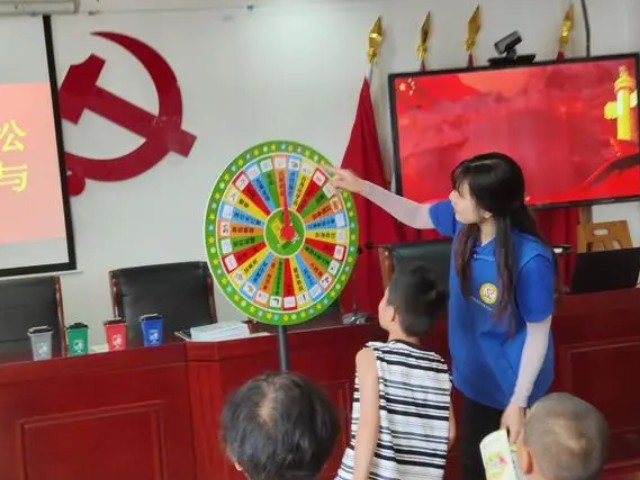 活動現(xiàn)場還設(shè)置了“垃圾分類大轉(zhuǎn)盤”互動游戲,參與者只需隨機轉(zhuǎn)動大轉(zhuǎn)盤,回答出指針最后指向的垃圾所屬類別,答案正確即可獲得禮品一份。大家興致勃勃,紛紛參與進(jìn)來。不少居民參加完游戲,還意猶未盡地聚在一起討論、學(xué)習(xí)垃圾分類知識。