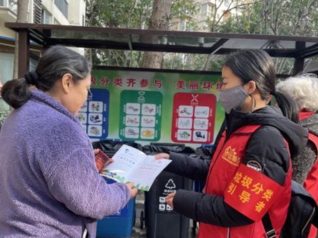 志愿者站在桶邊對(duì)前來投放垃圾的居民講解垃圾分類知識(shí),指導(dǎo)居民規(guī)范分類、正確投放,對(duì)沒有按要求分類的居民耐心指導(dǎo),詳細(xì)解答居民日常分類中遇到的問題,同時(shí)還倡導(dǎo)居民在日常生活中要養(yǎng)成垃圾分類的好習(xí)慣,鼓勵(lì)居民堅(jiān)持做好垃圾分類,帶動(dòng)身邊更多的居民參與進(jìn)來。