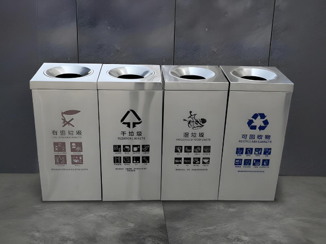 標(biāo)準(zhǔn)的“可回收物、有害垃圾、廚余垃圾、其他垃圾”四分類標(biāo)識(shí)采用激光雕刻或烤漆工藝,確保標(biāo)識(shí)長(zhǎng)期清晰。桶身容量設(shè)計(jì)兼顧空間利用率與投放便捷性,例如40L×4的模塊化組合可滿足日均500人次的垃圾處理需求。