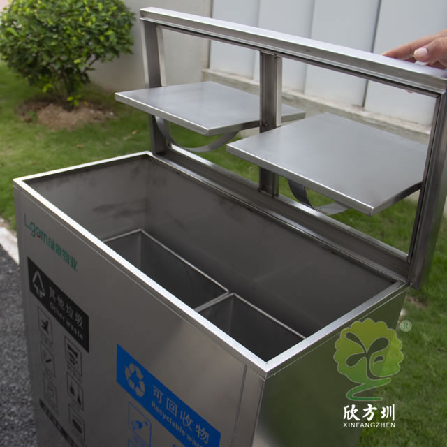 室內(nèi)兩分類搖蓋式不銹鋼垃圾桶采用201#,202#,304#優(yōu)質(zhì)不銹鋼材料模壓成型,堅(jiān)固耐用,不易破損;耐火安全,抗高低溫,適合各種惡劣氣候條件;金屬亮澤,高雅美觀,廣泛適用于各種機(jī)場(chǎng)、商場(chǎng)高檔場(chǎng)所;內(nèi)外表面光潔,減少垃圾殘留,易于清潔;配置鍍鋅板內(nèi)桶,便于垃圾清倒;激光切割開(kāi)料,尺寸精準(zhǔn),投口無(wú)縫焊接成型,打磨拋光處理圓滑不割手,欣方圳不銹鋼分類垃圾桶制作師傅有著多年經(jīng)驗(yàn)的熟手,每一道環(huán)節(jié)工藝成熟,質(zhì)量可靠,確保客戶如期交付驗(yàn)收。