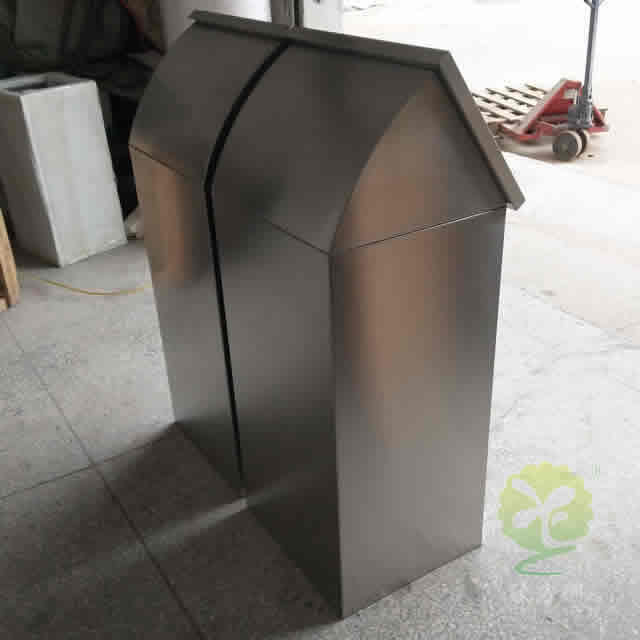 室內屋形搖蓋式不銹鋼分類垃圾桶生產過程: