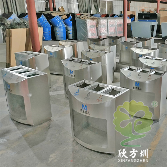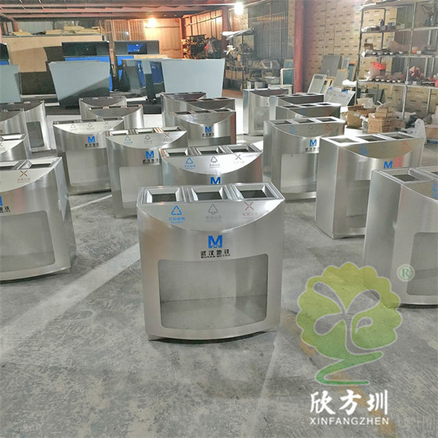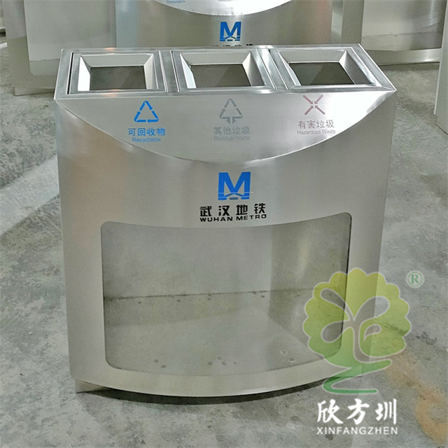 武漢地鐵站室內(nèi)透明三分類不銹鋼垃圾桶采用了優(yōu)質(zhì)的201不銹鋼1.0mm厚的板材制造,透明部分采用了3.0mm厚的亞克力板,三分類方形設(shè)計(jì),這款垃圾桶不含內(nèi)筒,直接套用透明塑料垃圾袋使用,絲網(wǎng)印刷了可回收物、其他垃圾、有害垃圾以及武漢地鐵logo標(biāo)識。
