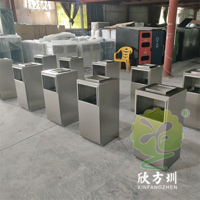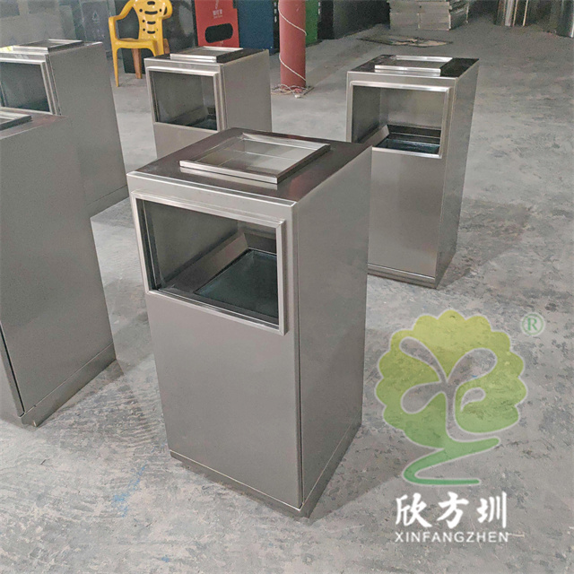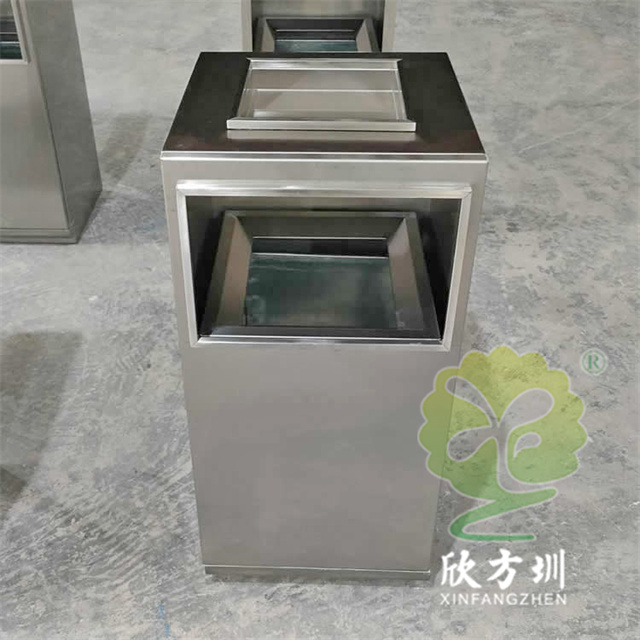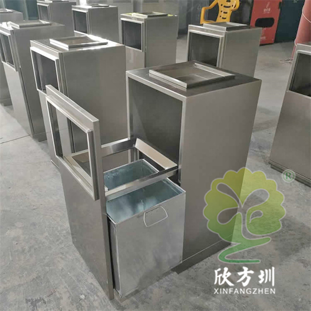 防指紋封油抽拉組合式不銹鋼分類(lèi)垃圾桶可以使用201或304不銹鋼板制造,方形滑軌抽拉式組合式設(shè)計(jì),表面做了無(wú)指紋封油處理,投口方形折邊有效防止割手,頂部位置帶煙灰盅,不需要也可以不要煙灰盅,正面可以絲印分類(lèi)標(biāo)識(shí)以及企業(yè)logo。