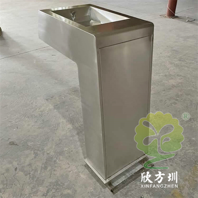 戶外園林公共不銹鋼飲水機凈水設(shè)備采用304#不銹鋼板制造而成,整體不銹鋼金屬本色,方形水盆底部鏤空方便漏水,底部一個門板可以使用三角鑰匙開門,內(nèi)置帶4個濾芯過濾系統(tǒng),方便更換濾芯,底部帶支架是埋入地下用水泥澆灌。
