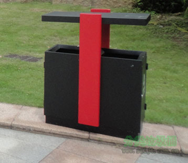 這批垃圾桶規格是750*470*940mm,采用優質冷軋鋼經沖床沖孔、表面經過除油、噴砂防銹處理后,再進行酸洗磷化處理;表面清理干燥后整體進行烤漆處理,桶身為黑色,立柱暗紅色,絲印白色分類標識;表面磨砂烤漆,啞光效果。有耐火安全,抗高低溫,堅固耐用,不易破損、經久耐用的特點,廣泛應用于工業園、學校等場所。