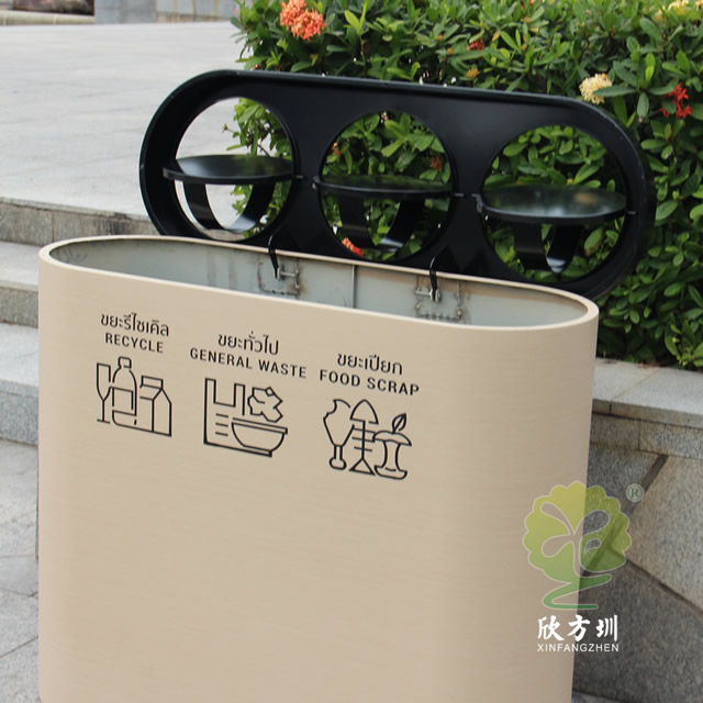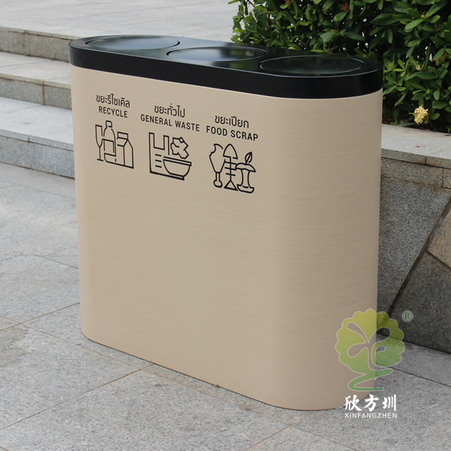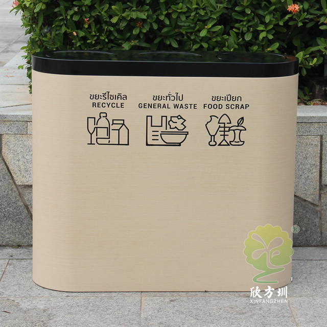 出口轉木紋鍍鋅板三分類垃圾桶是欣方圳設計生產的一款時尚藝術垃圾桶,這款垃圾桶工藝精湛、外形美觀、非常受市場歡迎,被許多采購客戶擺放于酒店、公寓、賓館、商場等高檔場所。如果您有采購垃圾桶的需求,請聯系我們報價,我們也接受來圖定制,期待與您的合作。