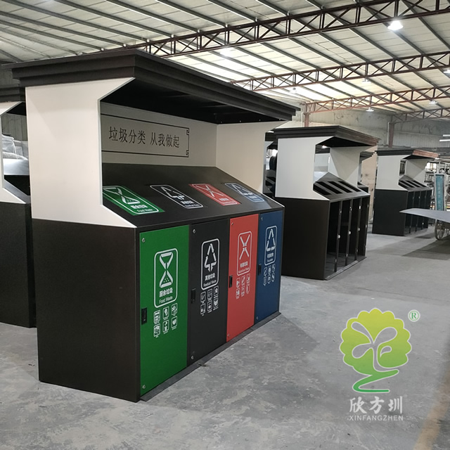 城市道路小區(qū)鍍鋅板四分類垃圾亭產品詳情: |