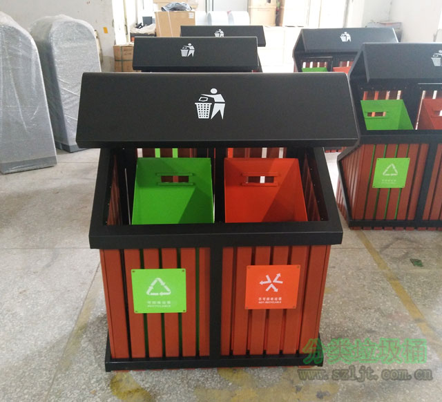 【產(chǎn)品型號】:玻璃鋼內(nèi)桶鋼木分類垃圾桶XFZ-G64